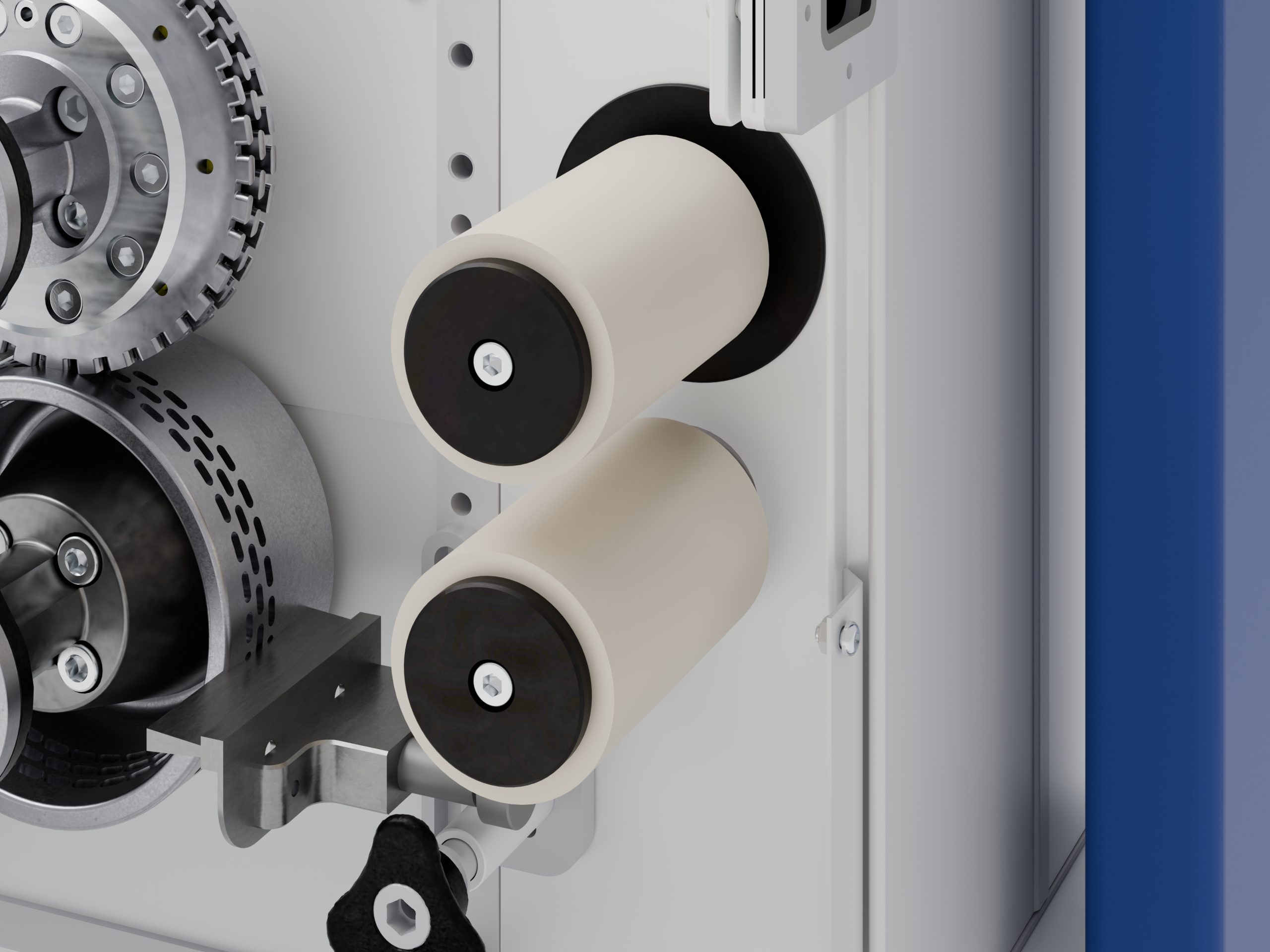 - Leicht gängiges Handrad zum Einspuren der Schneidräder